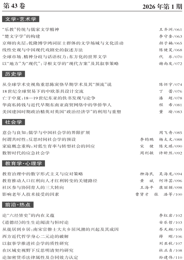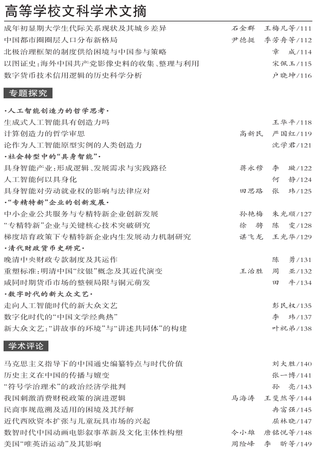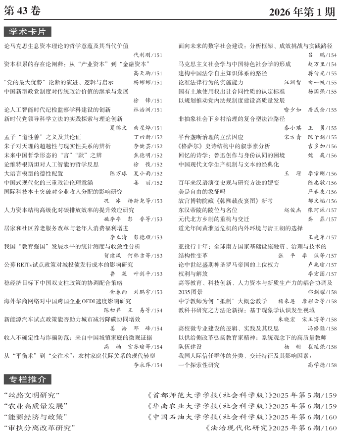 《高等学校文科学术文摘》2026年第1期目录